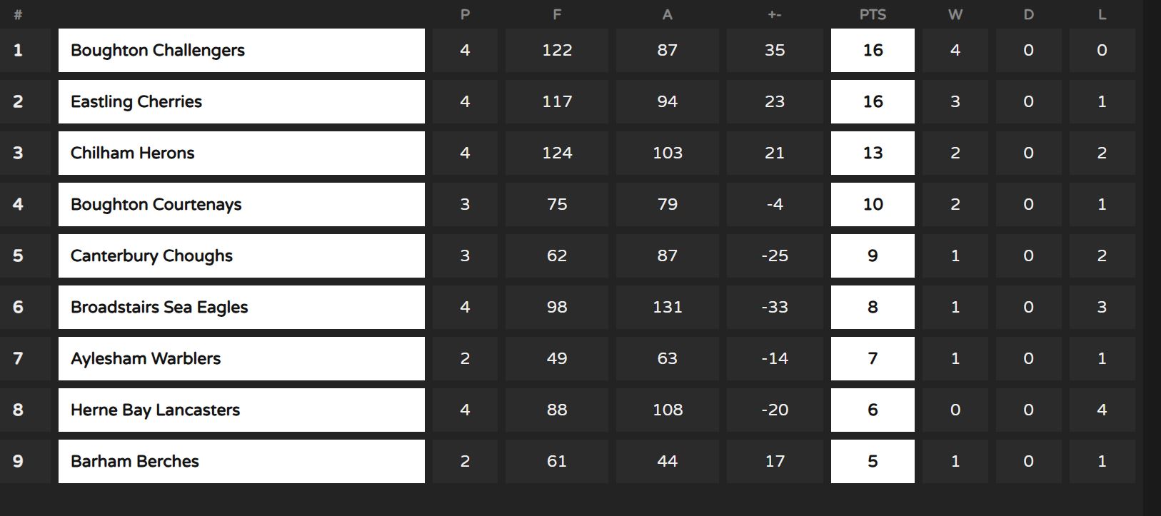 Dover League - Ladies
